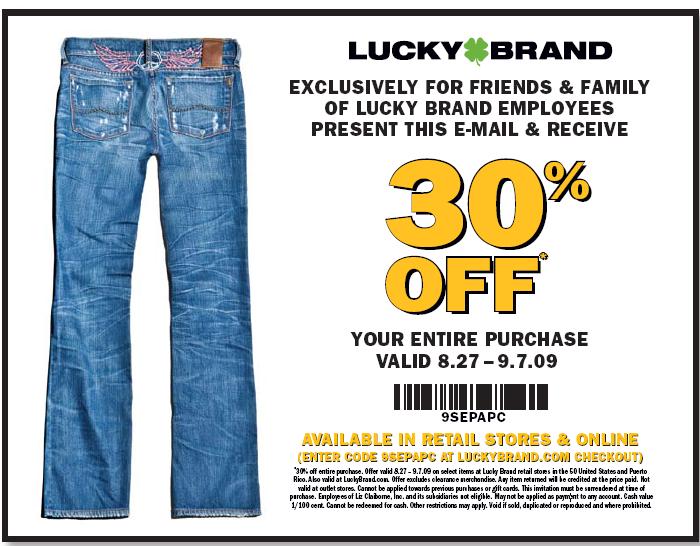 This is a Lucky Brand friends and family event but I snagged this coupon so you can take advantage of the savings too. Shop Lucky stores and save 30% on your entire Lucky store purchase, which includes the latest jeans. Guys.. these jeans are hot on men, check em out. Valid in store and online. www.luckybrand.com for store locations.