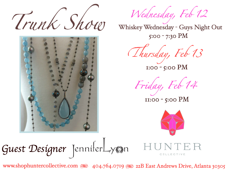 Hunter Collective, a new boutique in the heart of Buckhead that offers beautiful jewelry from around the country, is hosting a Valentine’s Day trunk show just for the guys. On Wednesday, February 12th, Hunter Collective is teaming up with local designer Jennifer Lyon to host a Whiskey Wednesday, an after hours shopping experience exclusively for men.