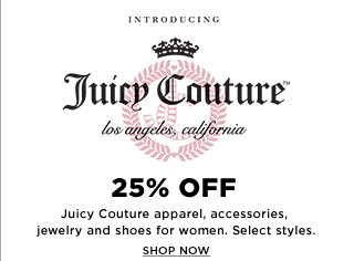 Juicy Couture is 25% off at Kohls and Kohls.com Plus get Kohls Cash and $10 off any purchase of $50 or more.