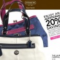 Here is a printable coupon available for 20% off any Coach Outlet purchase. Valid on everything in the store – treat yourself to something fun.