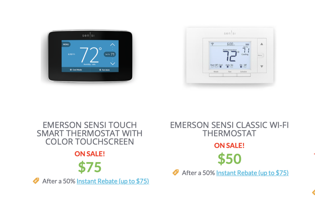 The store basically simplifies the rebate process when you input your address to check availability. Savings are immediate and usually up to 50% off the retail price of some of the most popular smart home products.
