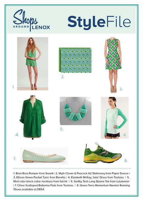 With 24 hours of green beer debauchery in store, you will of course wear green to celebrate. This year, ditch the “Kiss me I’m Irish” shirts and pick something you can wear past March 17th. The items below are from the Shops Around Lenox.