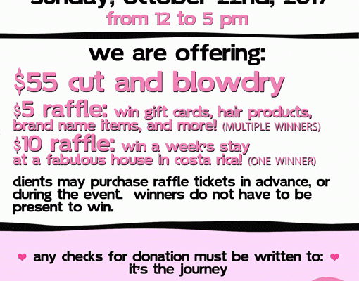 It's time for Siggers Hairdressers annual CUT FOR THE CURE! Siggers features $55 cut and blowdry, a $5 raffle with multiple winners of various prizes, and a $10 raffle with ...